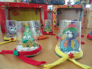 Trabalhos elaborados pelos alunos do 1º ciclo, durante a interrupção de Natal, na Biblioteca Escolar da EB1/JI Hortas de Stº António.