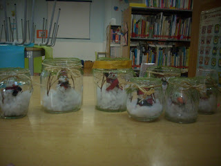 Trabalhos elaborados pelos alunos do 1º ciclo, durante a interrupção de Natal, na Biblioteca Escolar da EB1/JI Hortas de Stº António.