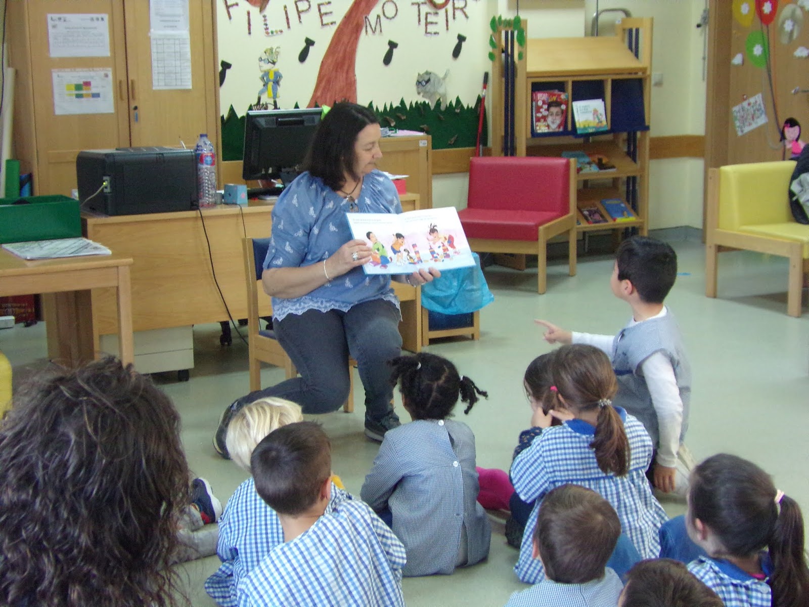 A professora bibliotecária iniciou um desenho e propôs aos alunos que, de acordo com o desenho que estava a elaborar, descobrissem o tema da história.