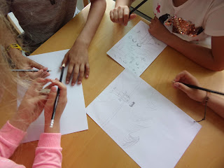 A cada aluno foi distribuída uma folha de papel A4 e um lápis com que os alunos iam reproduzindo o desenho.